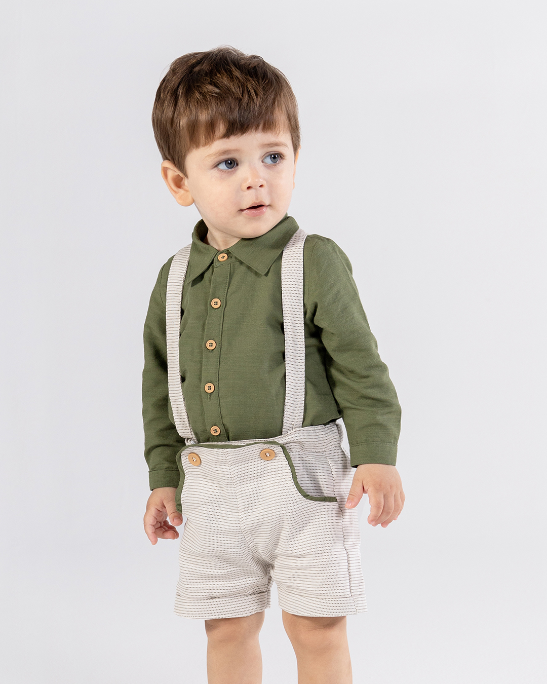 Bermuda suspensório textura Off-white + verde